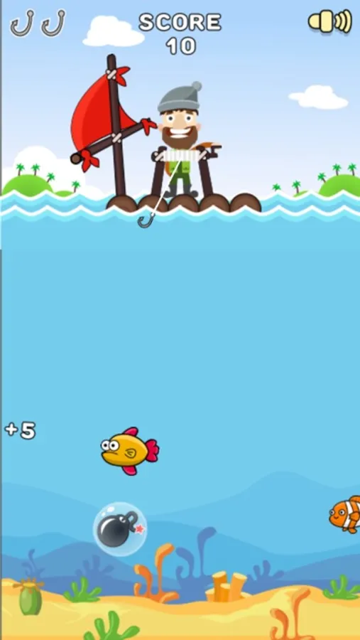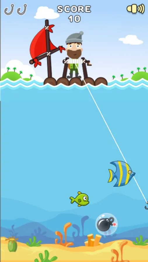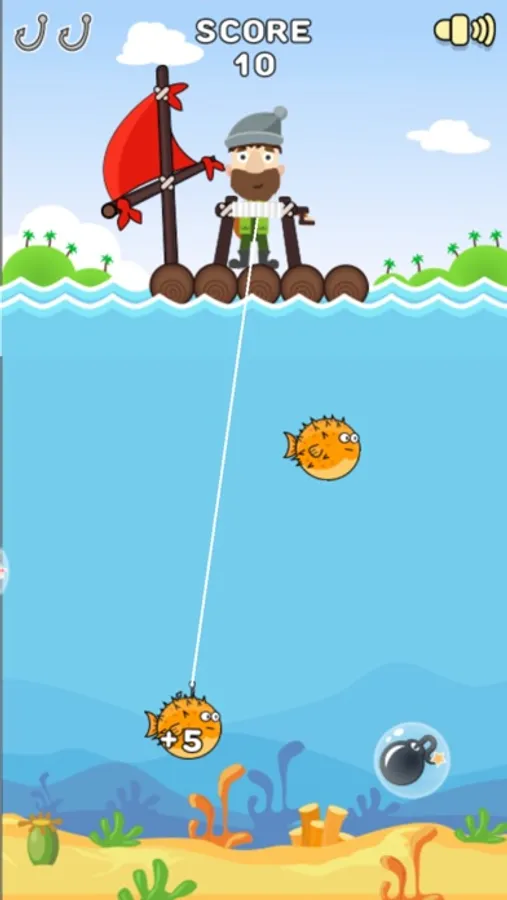 This day promises to bring you the biggest catch or your life. But everything depends on you. Click on the screen to drop the fishhook and catch a fish. Don't miss it, or you can deliver a bomb to your ship!