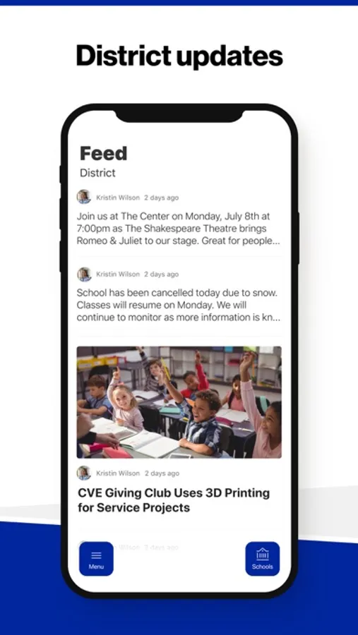 In the Live Feed is where you'll find updates from the administration about what's going on in the district right now. Whether that's celebrating a student's success, or reminding you about an upcoming deadline.
