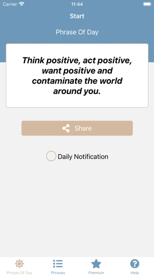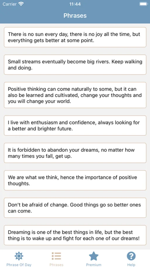 Every day, a random phrase of the day is selected to offer a new perspective on life, challenges, and accomplishments. The phrases are carefully selected to offer words of encouragement and hope, helping users to overcome difficulties and move forward.