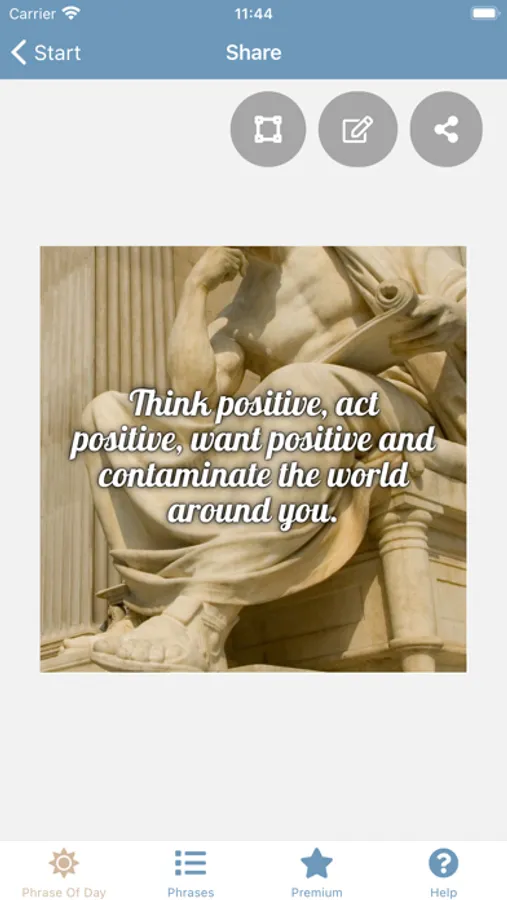 Moreover, the app offers the possibility to share the phrases with beautiful images that can be customized according to the user's taste. This allows users to share positive messages with their friends and family, spreading positivity and optimism to more people.