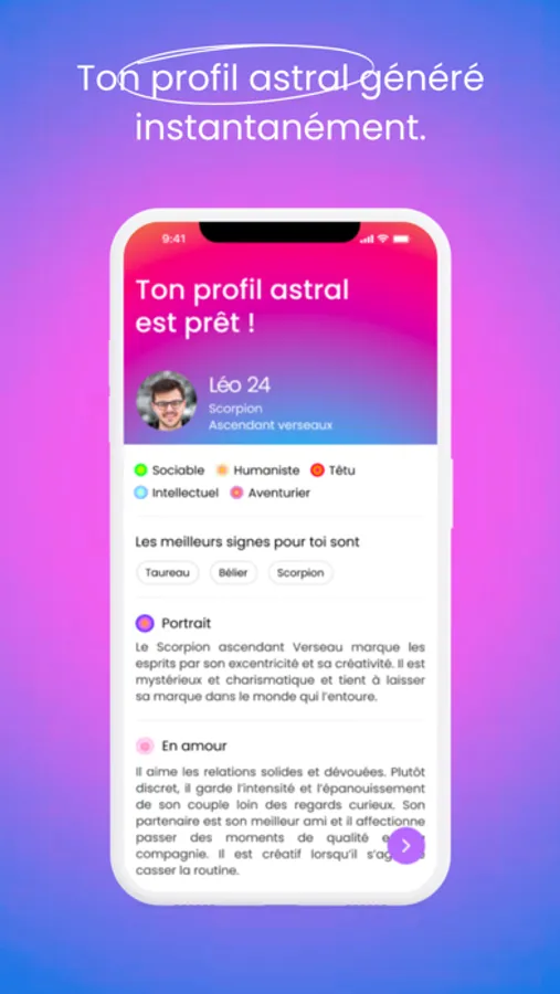 Chaque jour, reçois ton horoscope personnalisé. Il t'aide à te comprendre et aussi à comprendre les compatibilités astrales. Celui-ci t’amène à la réflexion et au développement personnel au quotidien.
