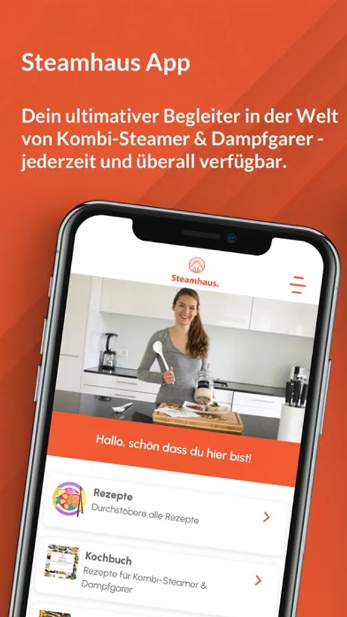Einfach und schnell kochen, Mahlzeiten planen und Rezepte speziell auf dein individuelles Steamer-Modell zugeschnitten – all dass kannst du in der Steamhaus App. Die Rezepte sind unkompliziert und perfekt für dich, wenn du deinen Kombi-Steamer und Dampfgarer optimal nutzen möchtest.