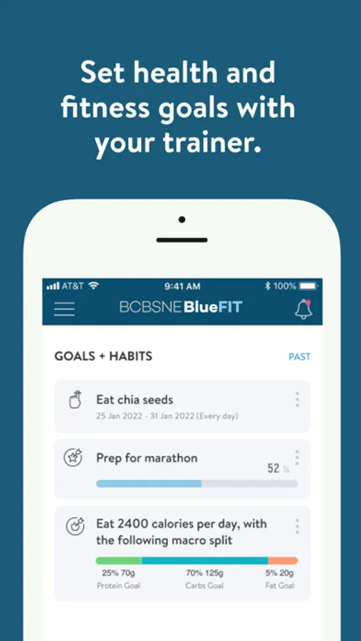 With the BlueFIT App, you will have access to workout programs designed specifically to help you reach your fitness and health goals! You can follow & track your workouts, your nutrition, your lifestyle habits, measurements and results–all with the help of your coach.