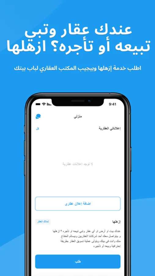 ويقدم التطبيق أيضا خدمة بيع عقارات الملاك أو تأجيرها، وهنا يجد العديد من الملاك صعوبة في إيجاد مكتب عقاري او شخص يتم الوثوق فيه وتسليمه مفاتيح العقار لبيعه أو تأجيره فلذلك وفرنا خدمة الوساطة العقارية لملاك العقار لبيع أو تأجير عقاراتهم من خلال خدمة ازهلها، بعد التقديم على الخدمة يتواصل مع المالك احد المكاتب العقارية الشريكة لنا وسيتم استلام مفاتيح العقار من المالك وهو في منزله وسيتولى المكتب عملية تسويق العقار وبيعه أو تأجيره بطريقة احترافية.
