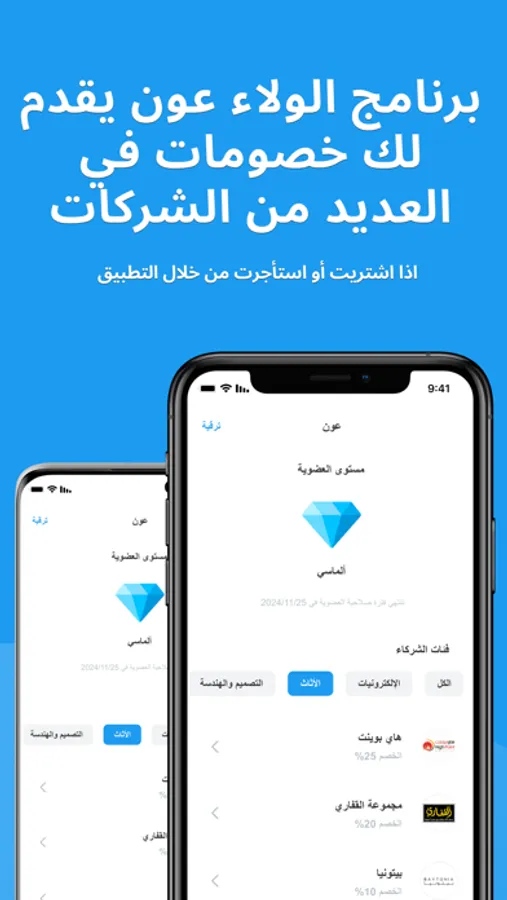 The app provide after-sales/rent services, represented in the loyalty program (Awn), as our relationship with the customer doesn’t end once the property is purchased or rented. AWN program helps our clients and saves many costs, as the client benefit of many discounts in different fields Such as Electronics, Furniture, Design and Engineering, Home services, Building materials, Maintenance companies, Gardens & Nurseries and many companies that help the client to build, furnishing and use the property.
