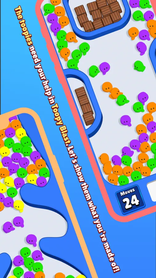 Tap to blast 3 toopies. Match of four or more to create a Toopy Bomb. Combine two Toopy Bombs to get a Super Bomb and two Super Bombs to get a Max Bomb! The bigger the match, the bigger the blast!