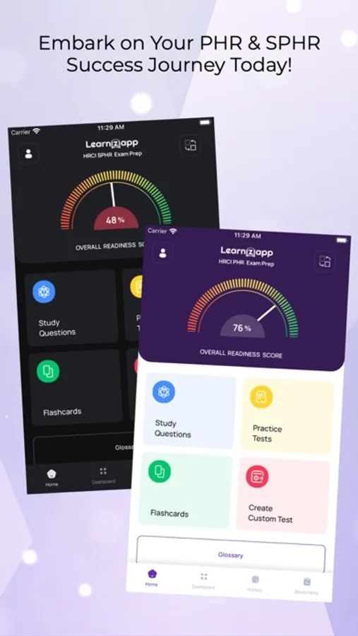 LearnZapp's Exam Prep is an intricate tool crafted with precision, mirroring the actual PHR and SPHR objectives. Our app is packed with more than 1500 authentic practice questions, 300+ interactive flashcards, and an extensive 600+ glossary terms, paving the path for your certification success.