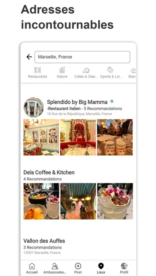 Naviguez parmi nos catégories sur mesure : restaurants, hébergements, activités, culture, nature... et bien plus encore. Plongez dans les recommandations de notre communauté pour vivre des moments inoubliables !