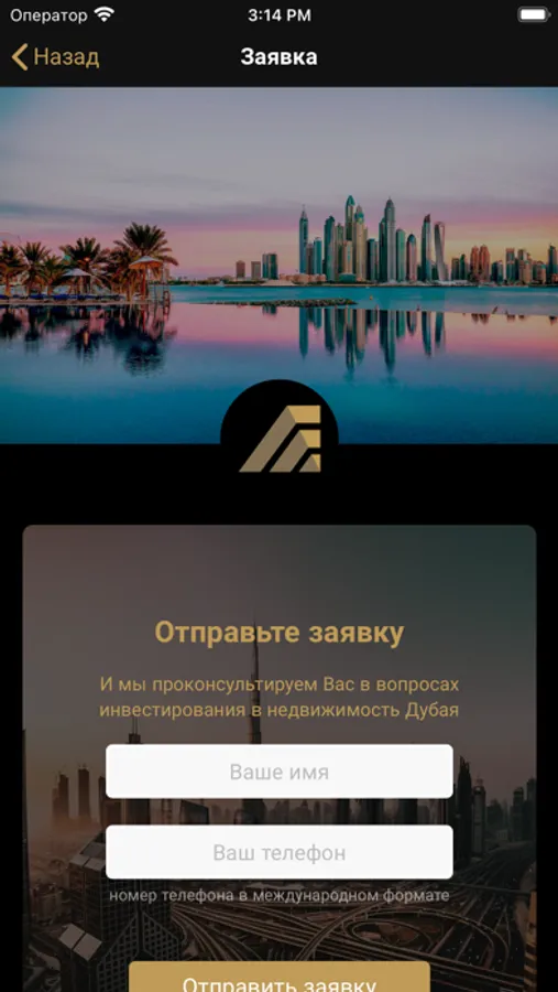 Приложение ознакомит Вас с популярными застройщиками и районами Дубая. Вы также сможете посмотреть, какие жилые комплексы уже доступны для инвестирования. В каталоге Вы сможете подобрать себе недвижимость под Ваши нужды, выбрав нужный фильтр для подбора, а в базе знаний найдёте ответы на наиболее часто задаваемые вопросы и ключевые моменты в приобретении недвижимости. Отправьте заявку, и мы проконсультируем Вас в вопросах инвестирования в недвижимость не только Дубая, но и всех ОАЭ.