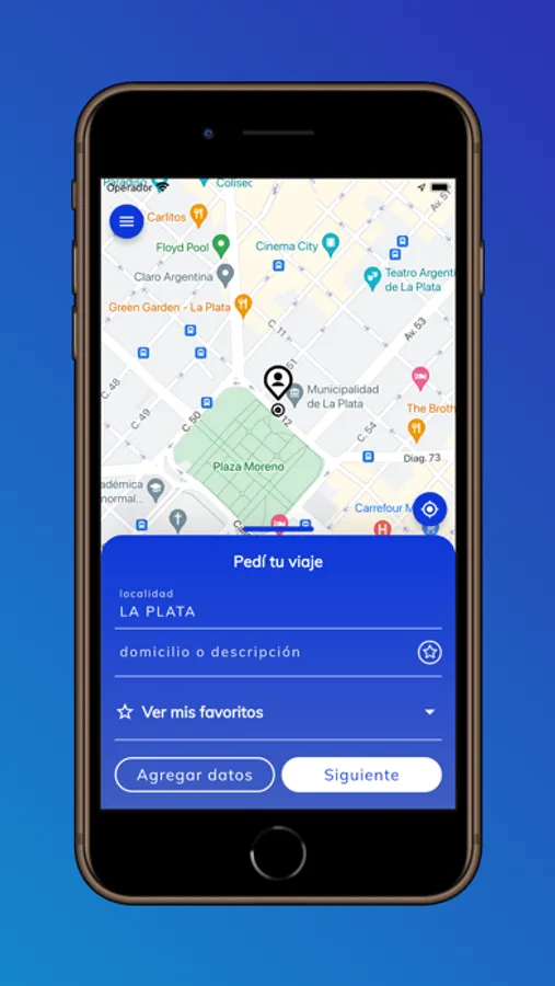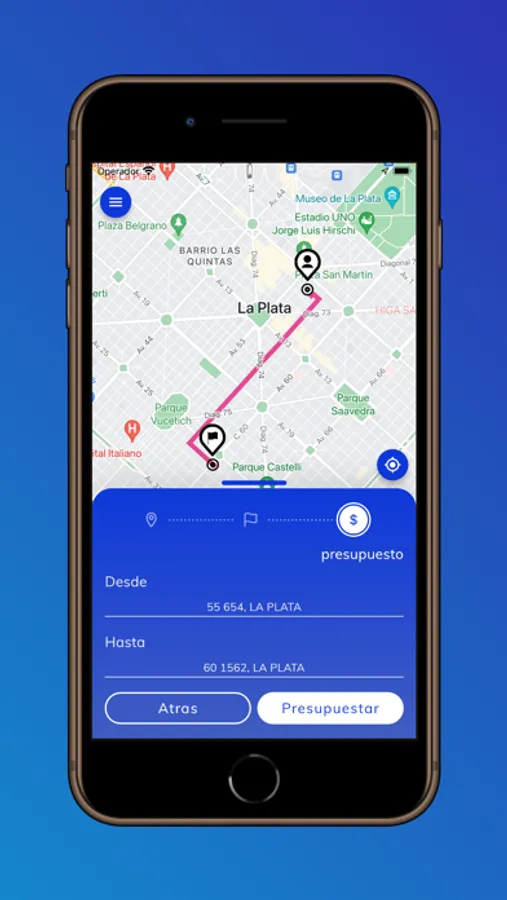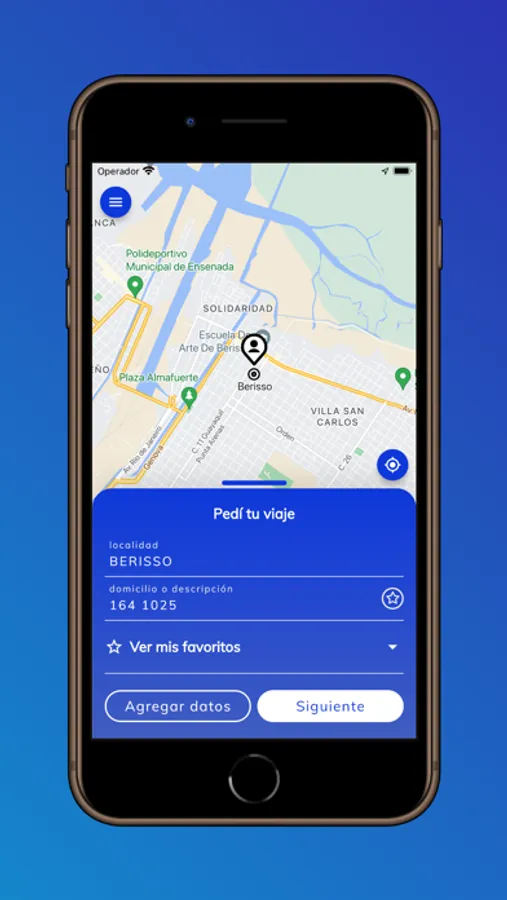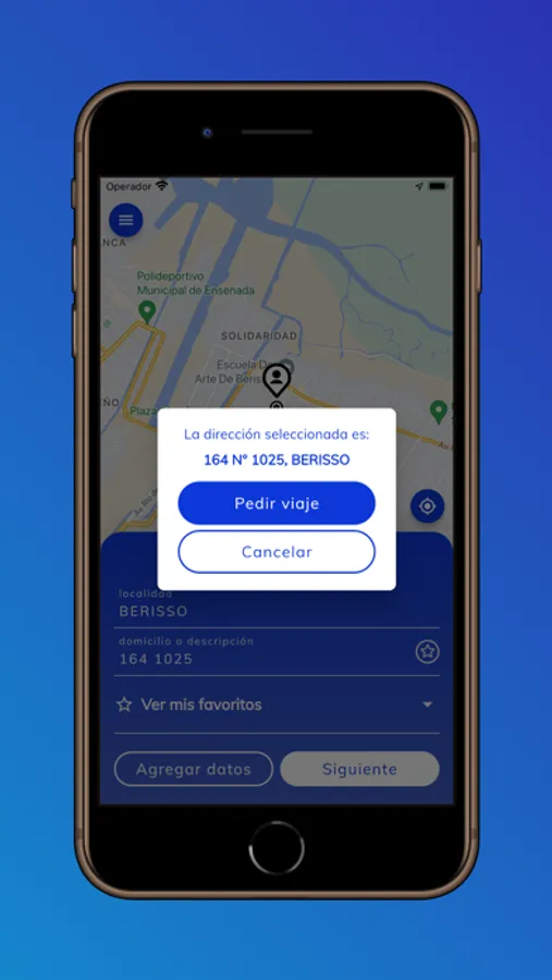 - Solicitud de viajes desde una ubicación elegida sobre un mapa o carga manual de calles.