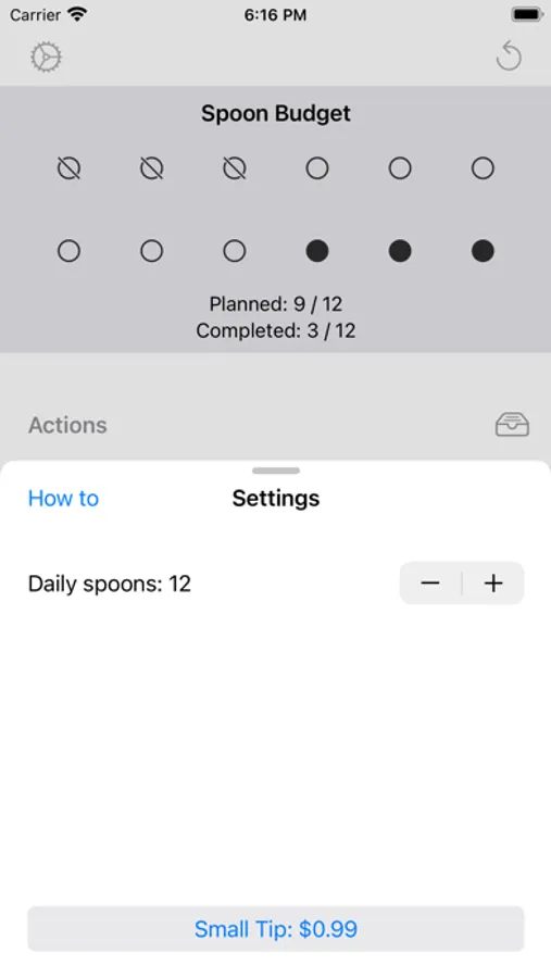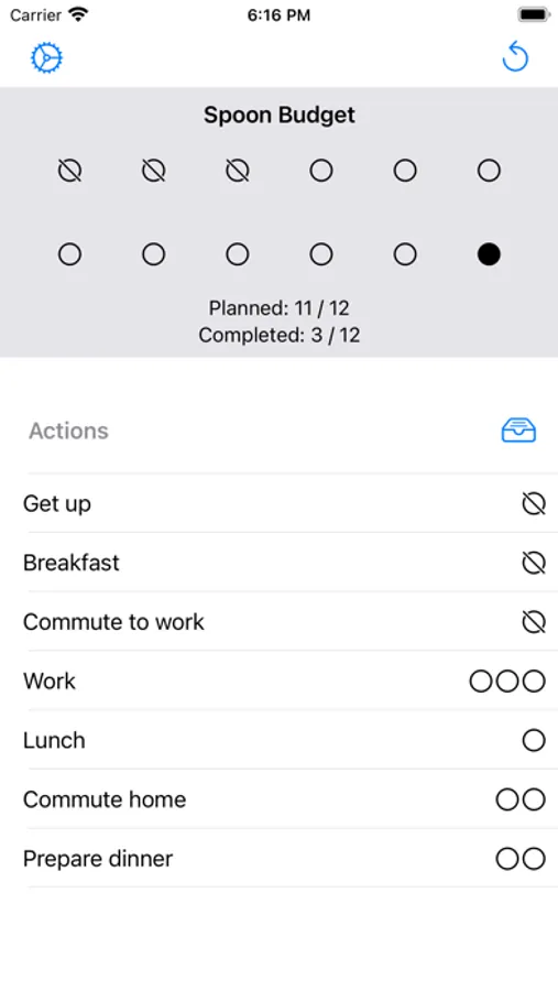 This is where this app comes in. This app helps you to keep an overview over your available spoons.