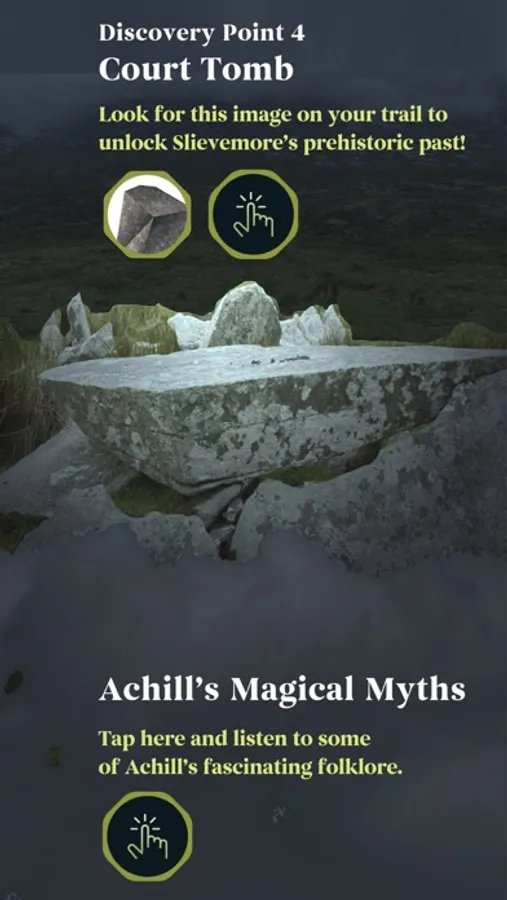 Use the app to unlock fascinating facts about other features along the trail, like the remains of ancient monuments nearby; tombs belonging to the earliest inhabitants of Slievemore.