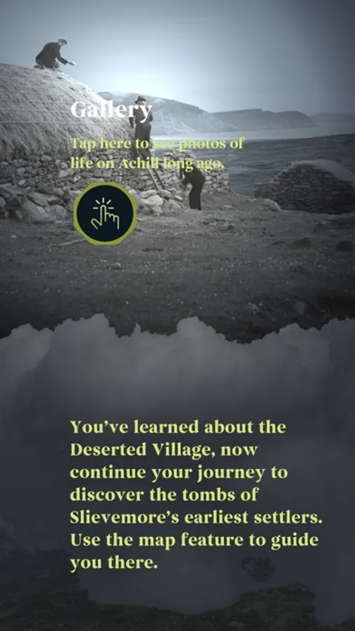 Produced on behalf of Mayo County Council, the Slievemore Heritage Trail app brings you on a journey through the lives of a once-thriving island community. Located in the shadow of Slievemore mountain on Achill Island, what is now known as the Deserted Village was once home to a cluster of related families. Life was tough, so each family depended on each other to survive, until the Great Famine of 1845 spelled the end of village life.