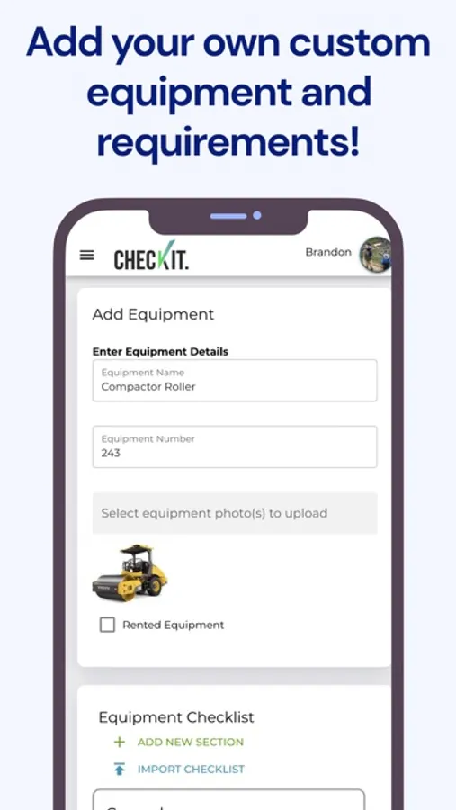 Add Custom Equipment:The "Add Equipment" section of CheckIt makes it easy to add new equipment to your inventory. Simply enter the equipment details, including the name, model number, and upload a photo for easy identification. You can also add any additional notes or details about the equipment, such as specific maintenance requirements and a custom operations checklist.