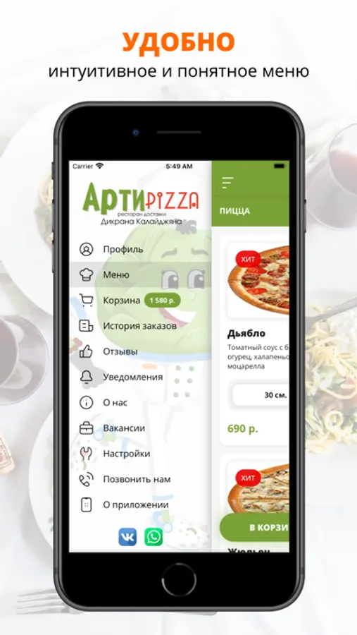 Воспользуйтесь удобным приложением для заказа еды «Арти пицца».