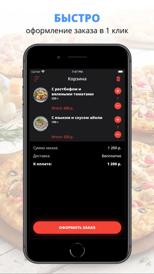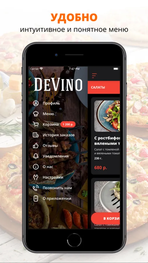Скачивайте наше приложение, оформляйте заказ и наслаждайтесь любимой едой, где бы Вы ни были! Приятного аппетита!