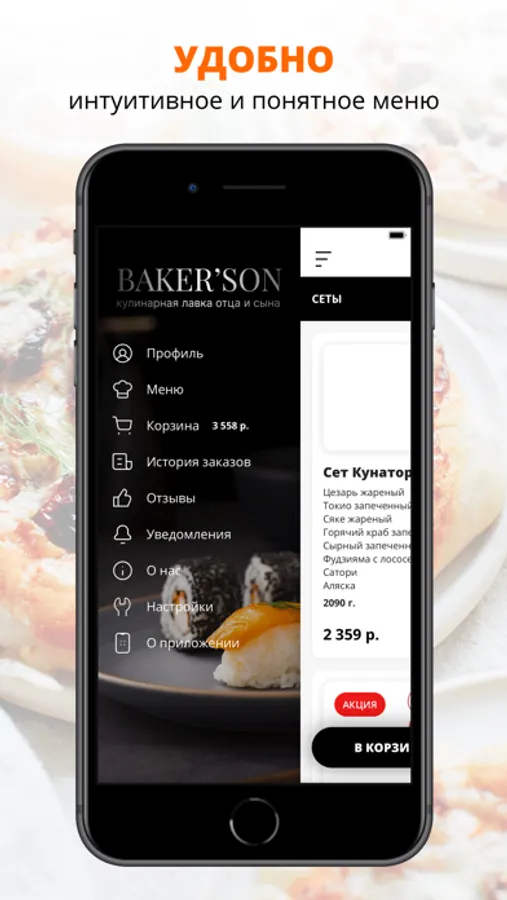 Воспользуйтесь удобным приложением для заказа еды «BAKERSON».
