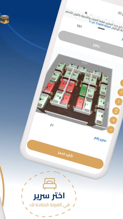 - يتيح عملية تسكين حجاج الداخل من خلال عرض تفاعلي ثلاثي الابعاد للمخيم.