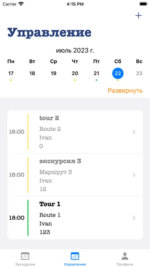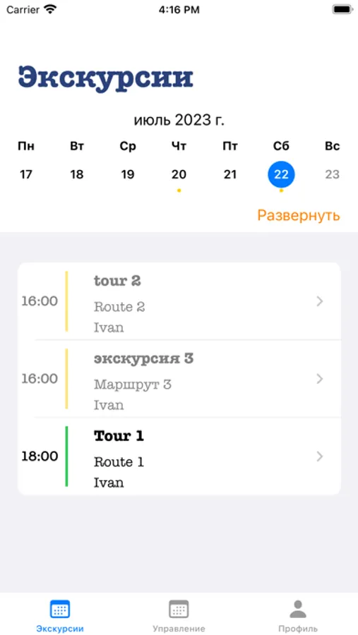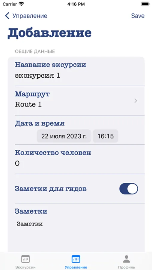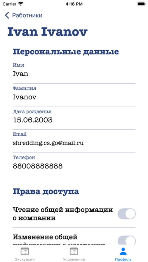 Администратор - может создавать, редактировать и управлять экскурсиями