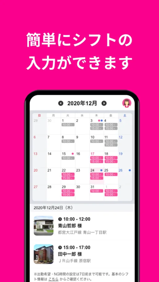 ご都合の良い日程で、最寄りのオフィスでの面接説明会にお越しいただきます。会社やお仕事の説明の後、面接で働きたい時間・場所・やりたいサービス内容など、お仕事のご希望を中心にお聞きします。履歴書はその場ですぐ書ける簡単なフォーマットを会社で準備していますので、事前の準備は不要です。
