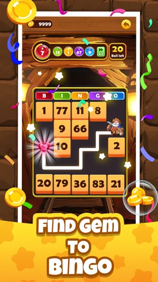 A new way to play, you need to help the miner find the 5 gems in the bingo card! Simple and easy to play, Bingo!