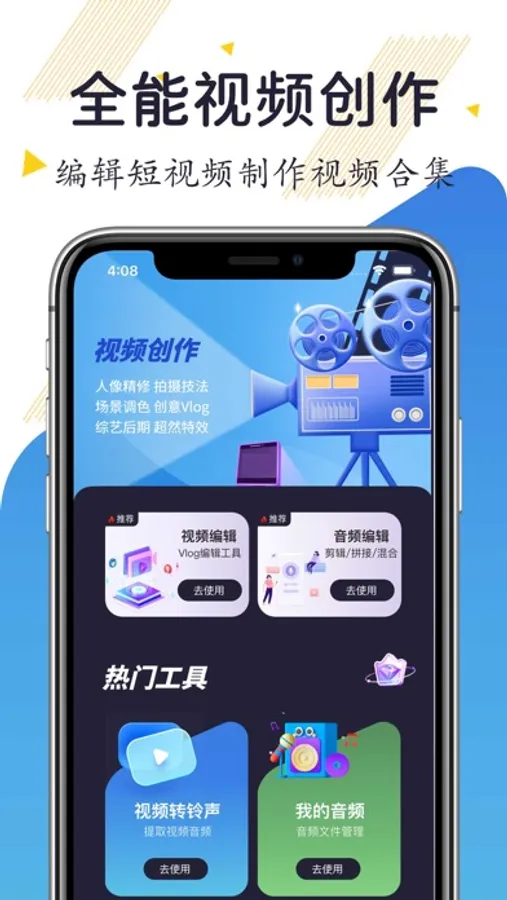 全能视频编辑软件是一款可以视频剪辑,调速,倒放以及音频剪辑,拼接等专业视频处理软件工具齐全,操作简便!