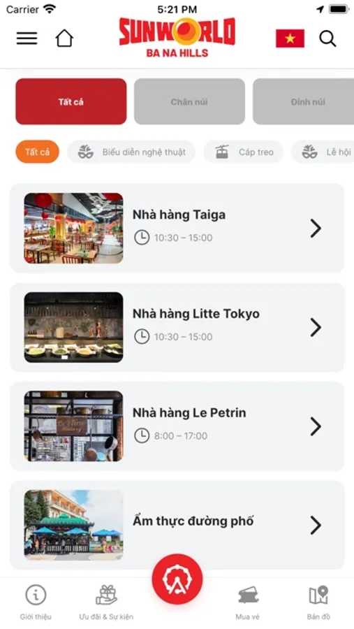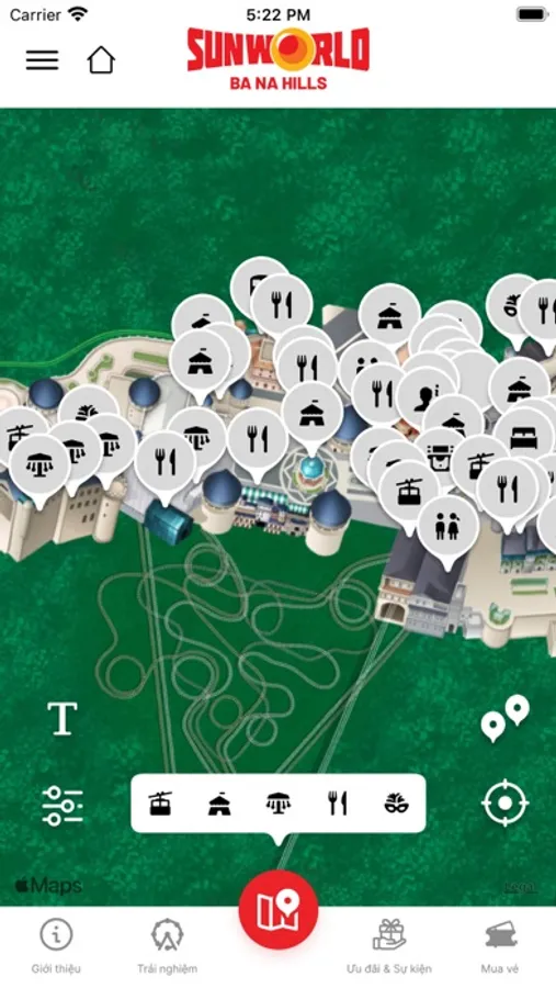 When you are in the Sun World park, the Sun World map will show your location and attractions, restaurants, shops, and more. close to you.