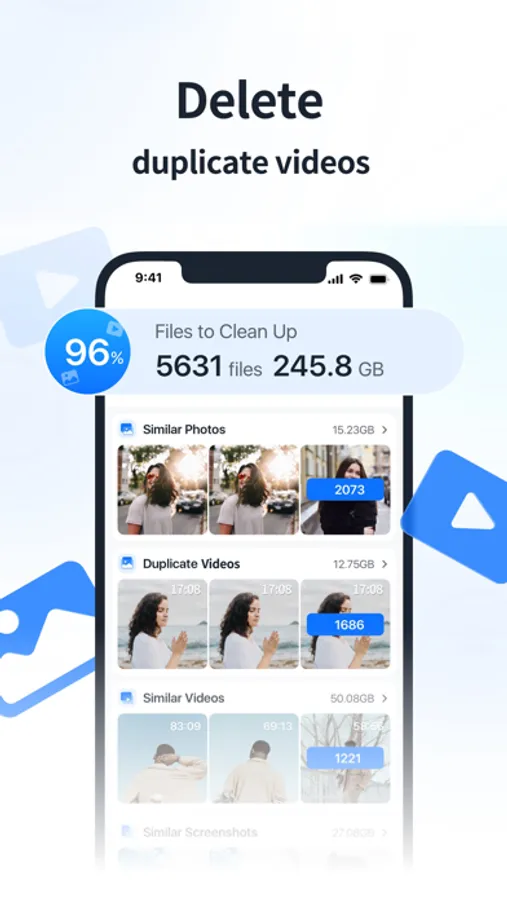 * Efficiently free up phone storage space by sorting videos and photos by size.