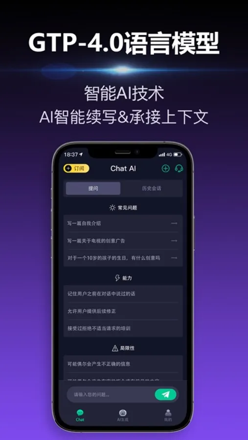 AI 智能机器人可以与人对话互动,回答问题,协助创作,进行AI写作、文案、翻译、绘画等,高效便捷地帮助人们获取信息、知识和灵感。