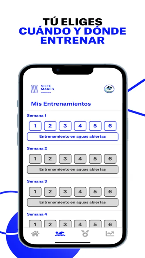 Entrena con la App de Siete Mares Nadadores, disponible para todos los nadadores de