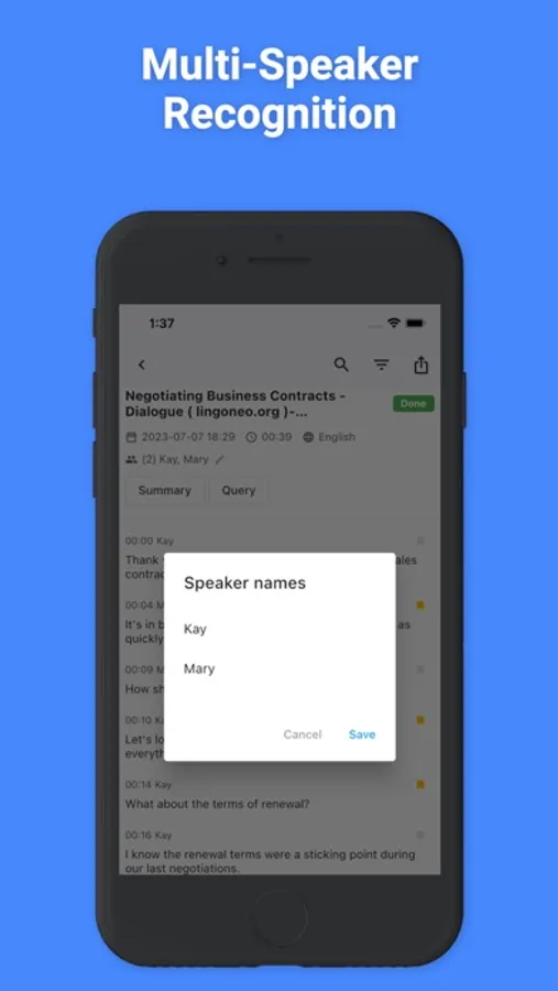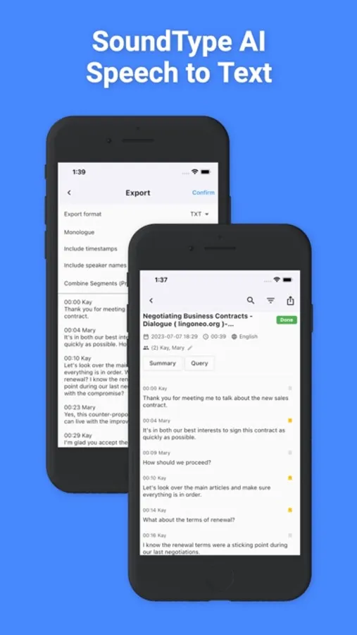 Ideal for group meetings and interviews, SoundType AI identifies and tags different speakers in your audio, providing well-structured, easy-to-follow transcriptions.