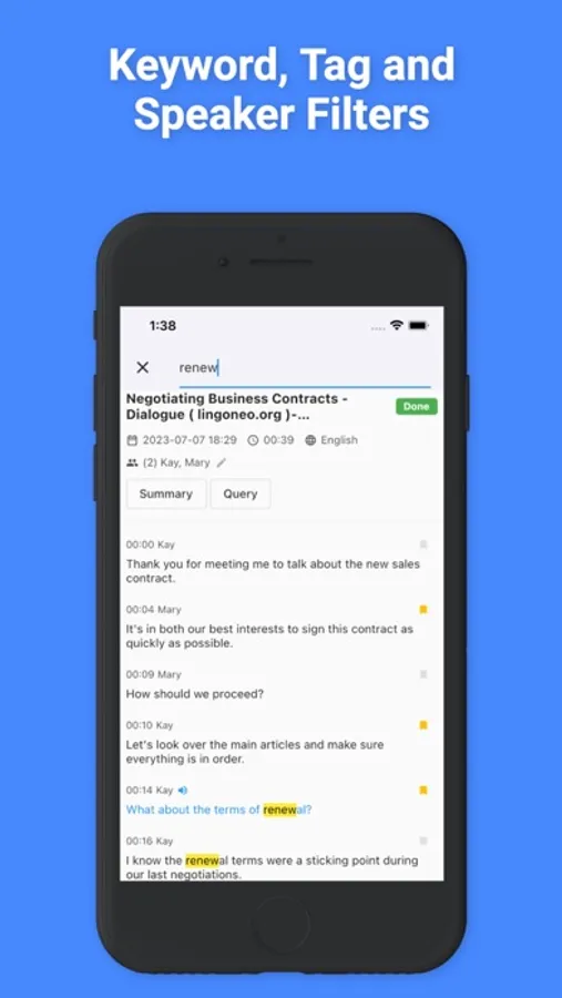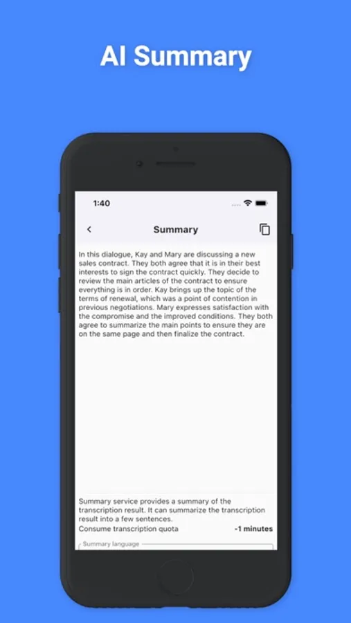Receive the key points and highlights of your audio in a concise, understandable format with SoundType AIs summary feature.