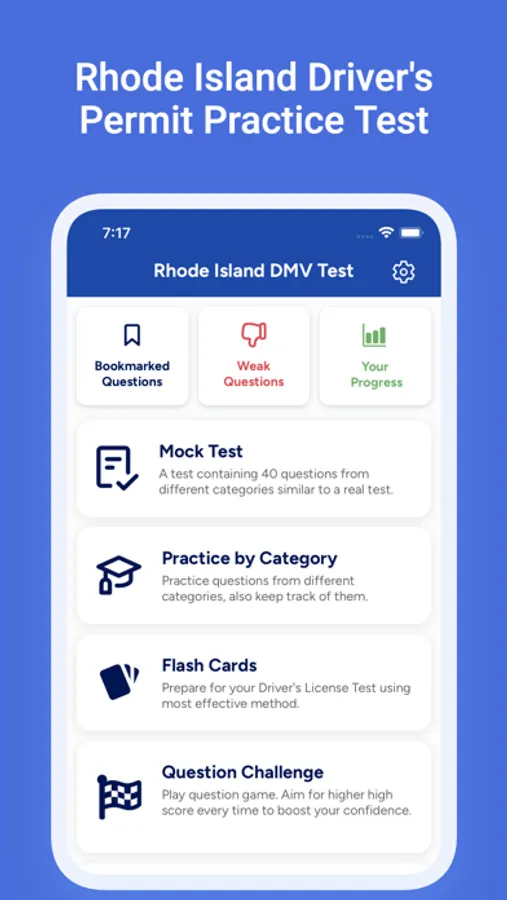 Are you looking for a practice material to prepare for the learner’s license test or driver’s license knowledge test for the Rhode Island state? Use our Rhode Island DMV Permit Practice Test 2023 app to prepare for the Driver’s License test and get your driver’s permit with ease.