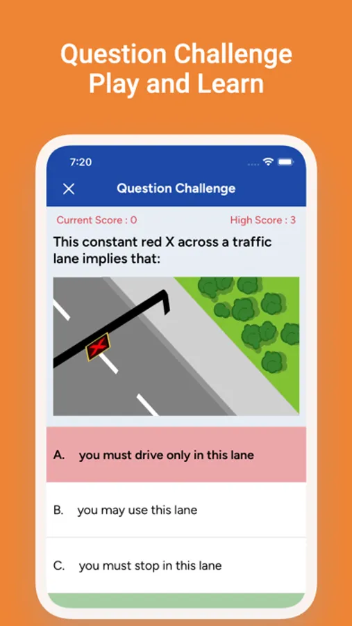 This is a unique feature of our application. It allows you learn while playing a challenge game. Your score will go up by one point each time you correctly answer a question up until the point where you get it wrong. It keeps record of your high score.