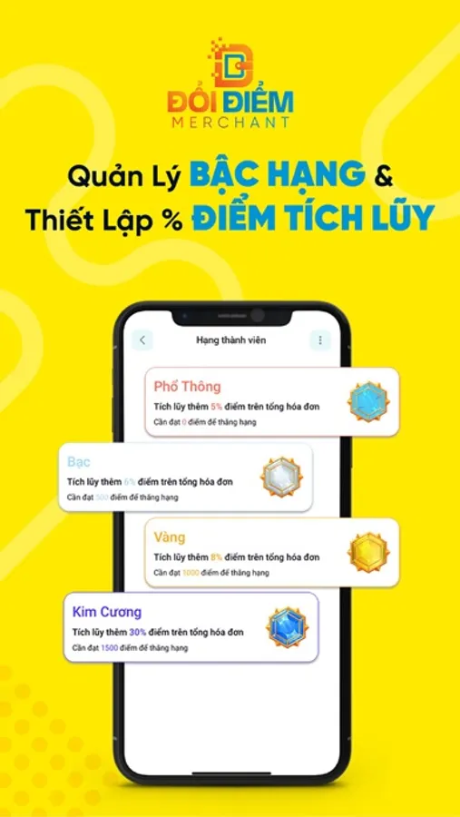 - Quản lý bậc hạng và % điểm tích lũy tương ứng