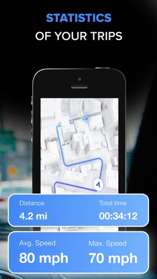 Complete Trip Statistics: Track average and maximum speed, distance traveled, journey duration, journey time, idle time, and route on a map.