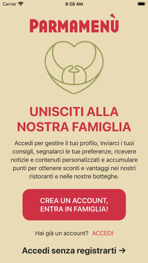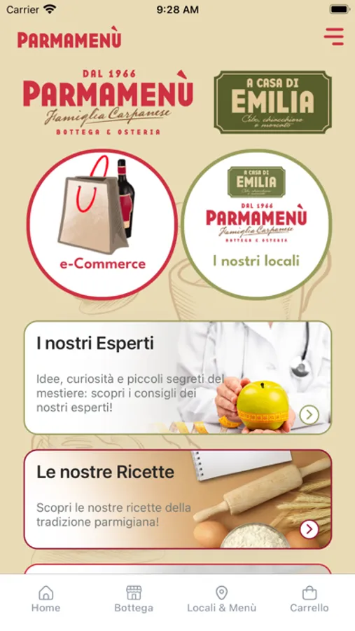 Parma Menù ti permette di consultare e acquistare i prodotti a catalogo, scoprire tutte nostre le botteghe e restare aggiornato sui consigli e le novità dei nostri esperti in tema di alimentazione! Grazie alla Fidality Card potrai ottenere sconti, promozioni e acquisire punti per poterli poi spendere nei nostri locali o negli acquisti on line.