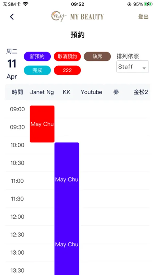 有效地呈現房間、儀器、美容師等預約情況,更有效地方排客戶享受服務。