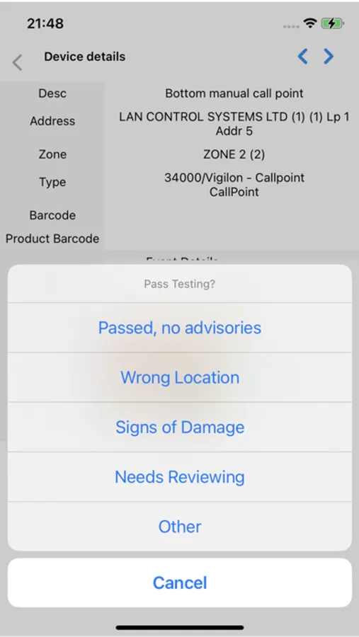 Complement your Nimbus Fire Alarm servicing activities with Nimbus Engineer App which allows you to receive notifications of Fire Alarm devices being tested allowing Single Engineer testing. Also feedback testing results for Sounders, Inputs, Outputs or any other asset added to your Fire alarm equipment such as Repeater panels or Batteries.