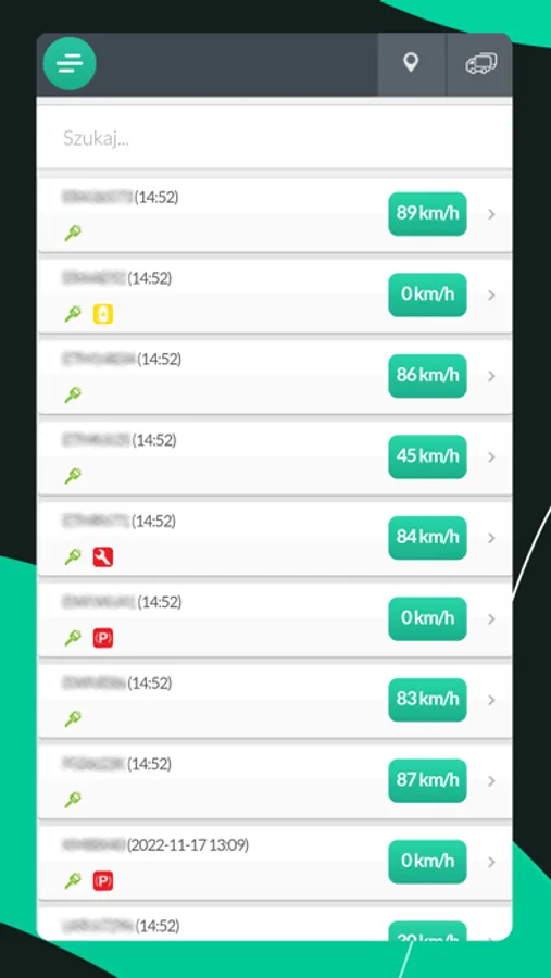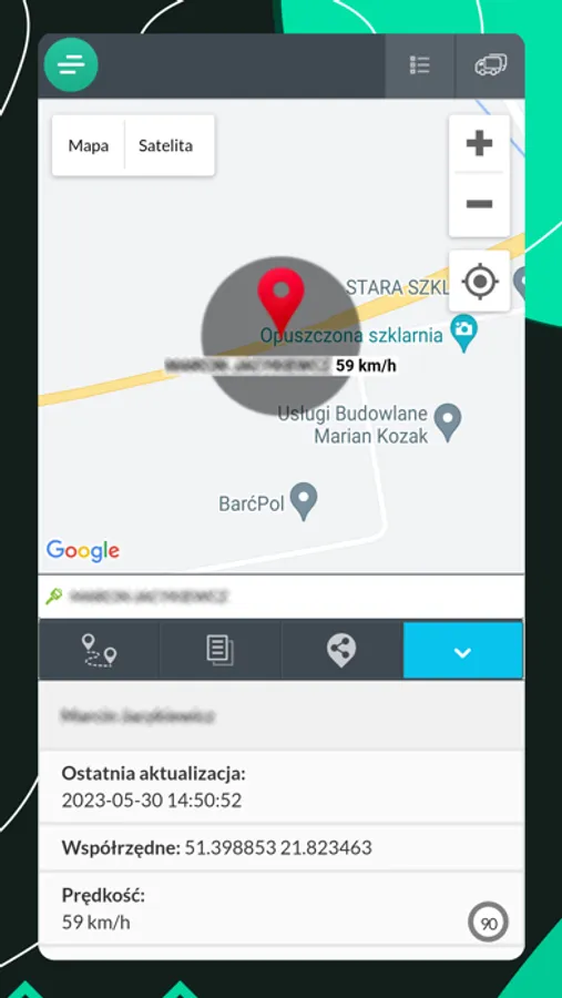 Aplikacja służy do monitorowania położenia i parametrów pracy pojazdu.