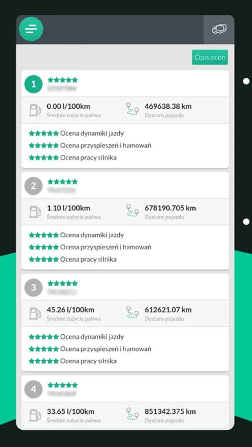 -Ocena jazdy kierowcy.