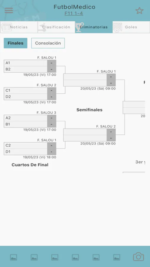 Consulta todos los resultados, noticias, jugadores, goleadores, sanciones,.... del torneo www.FutbolMedico.es.