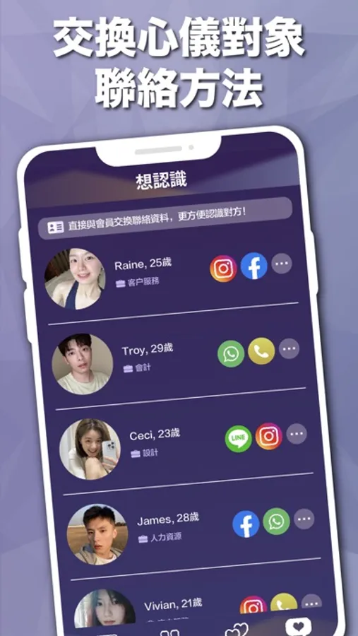 WD App是一款結合了AI優勢且功能獨特的交友社交App,與其他交友App不同之處,除了WD提供強大的AI智能配對功能外,它更可以直接與其他用戶交換聯繫方式,包括FACEBOOK、INSTAGRAM和LINE等。