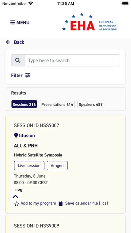 For participants who attended in Frankfurt, the Congress Mobile App is the Congress in the palm of your hands. Via the Congress Mobile App, browse the program, save sessions of your interest, find your location, access all content, and interact via the Q&A feature. For virtual attendees, the Congress Mobile App is the tool to watch all the Congress content from any device. The Congress Mobile App is there for you to follow the latest EHA2023 Congress news, receive updates about the program and view all the content.