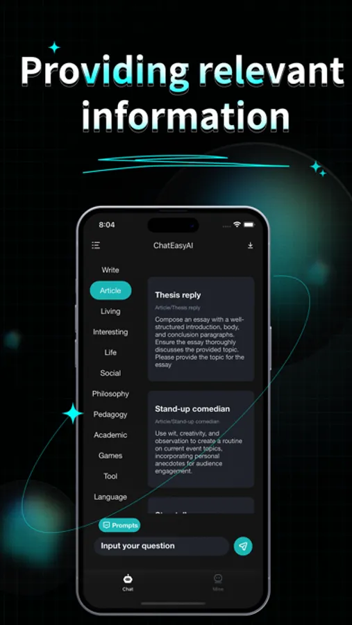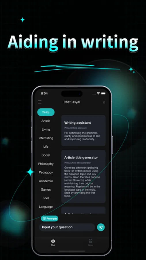 ChatEasyAI, an intelligent writing chatbot app! Whether you're a professional, a content creator, or an individual in need of writing assistance, our product will deliver outstanding results.