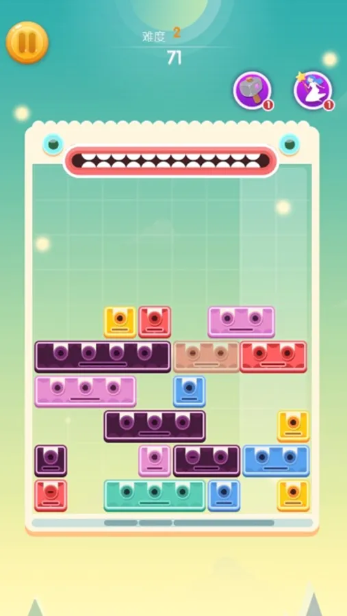 一款移动消除游戏,在游戏中你要拖动方块,消除整行,一起来挑战一下,尽情狂欢吧。
