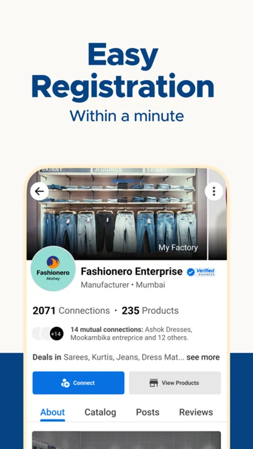 Easy to use, all-in-One business networking app with features of online business (b2b marketplace) apps where you can create a free website and share on WhatsApp Business, IndiaMart, TradeIndia, Udaan, JustDial, JDMart, Bikayi, Facebook Marketplace (B2B).
