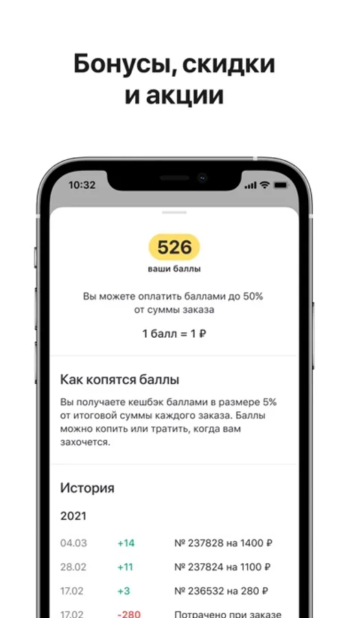 • Кэш-бэк баллами от 5% до 10% с каждого заказа
