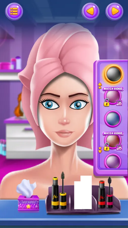 Makeup with your style and pick your favorite match. In this beauty salon, you can experience the real makeup process. You can use foundation, eye makeup, lipstick, hairstyle, necklace and earrings to dress up. Tons of tools for you to discover, use facial cleanser to do a skin massage before makeup, choose different cosmetics to create fashion makeups, Style your costumers with clothing, hairstyles and accessories to match her look!