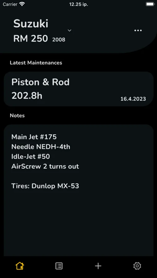 Managing your dirt bikes maintenances has never been easier, no more oily notebooks or missing information.